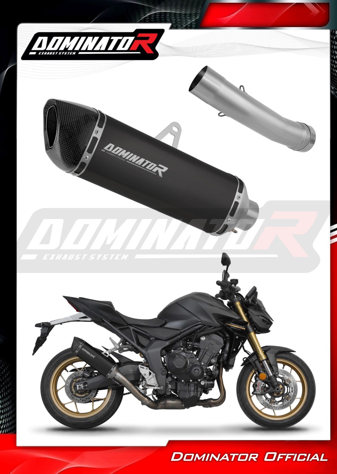 Sistema de escape Dominator cambiará el carácter de su motocicleta dándole un sonido único. El sistema de escape a través aumentará la potencia y el par del motor, mientras que reduce el peso del silenciador.