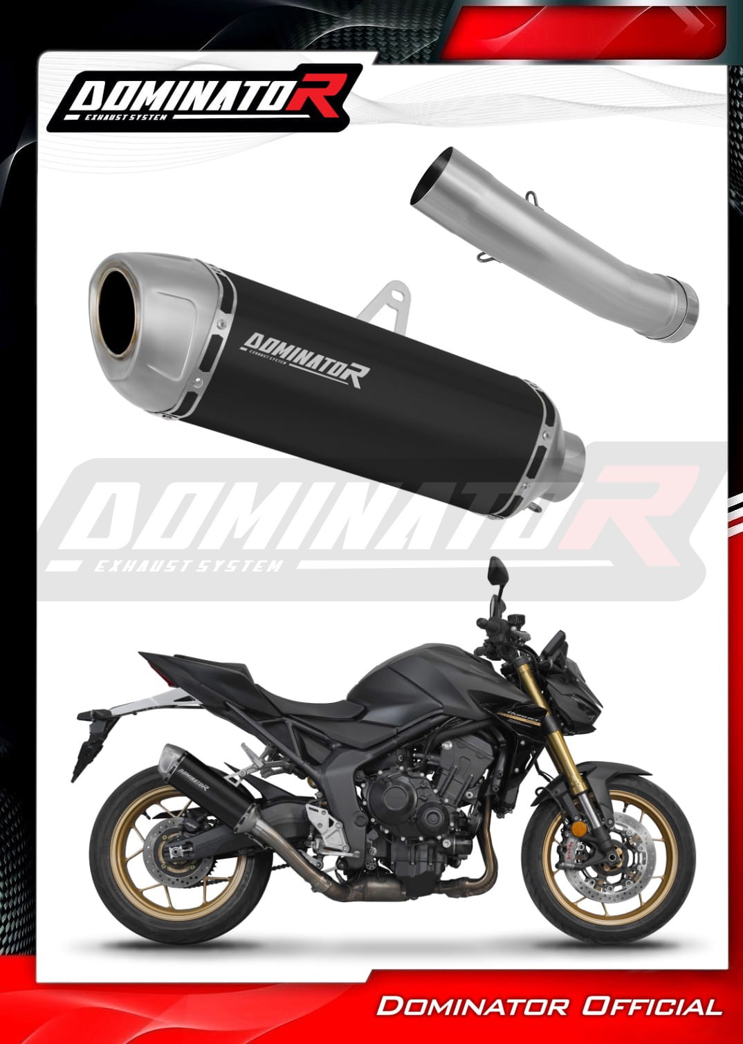 Sistema de escape Dominator cambiará el carácter de su motocicleta dándole un sonido único. El sistema de escape a través aumentará la potencia y el par del motor, mientras que reduce el peso del silenciador.