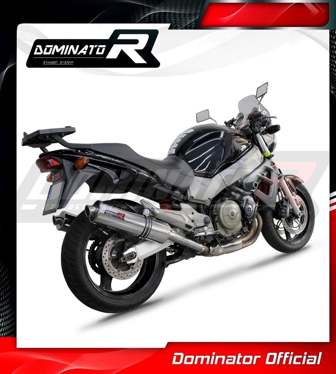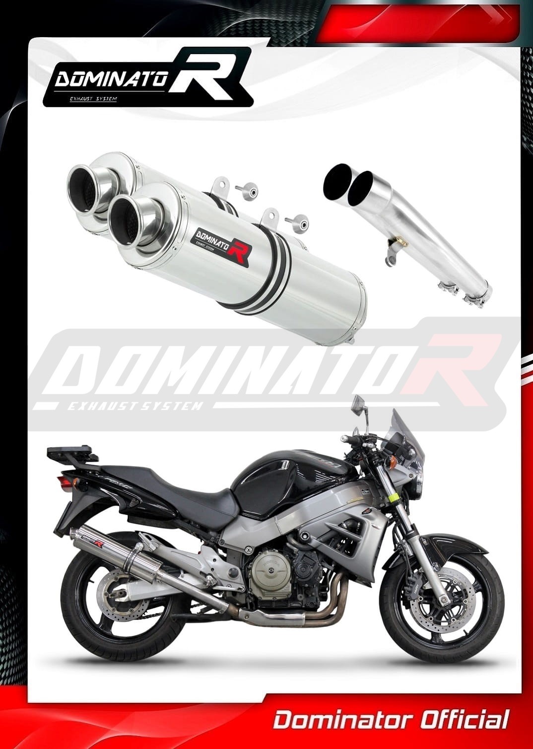 Sistema de escape Dominator cambiará el carácter de su motocicleta dándole un sonido único. El sistema de escape a través aumentará la potencia y el par del motor, mientras que reduce el peso del silenciador.