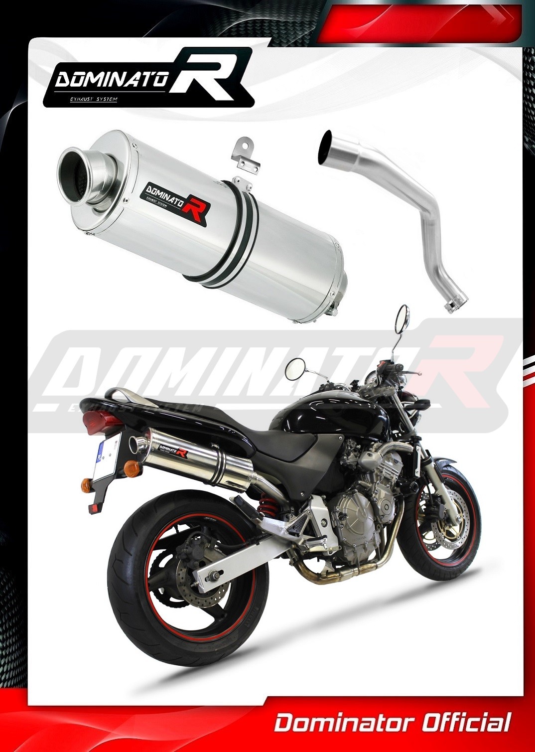 Sistema de escape Dominator cambiará el carácter de su motocicleta dándole un sonido único. El sistema de escape a través aumentará la potencia y el par del motor, mientras que reduce el peso del silenciador.