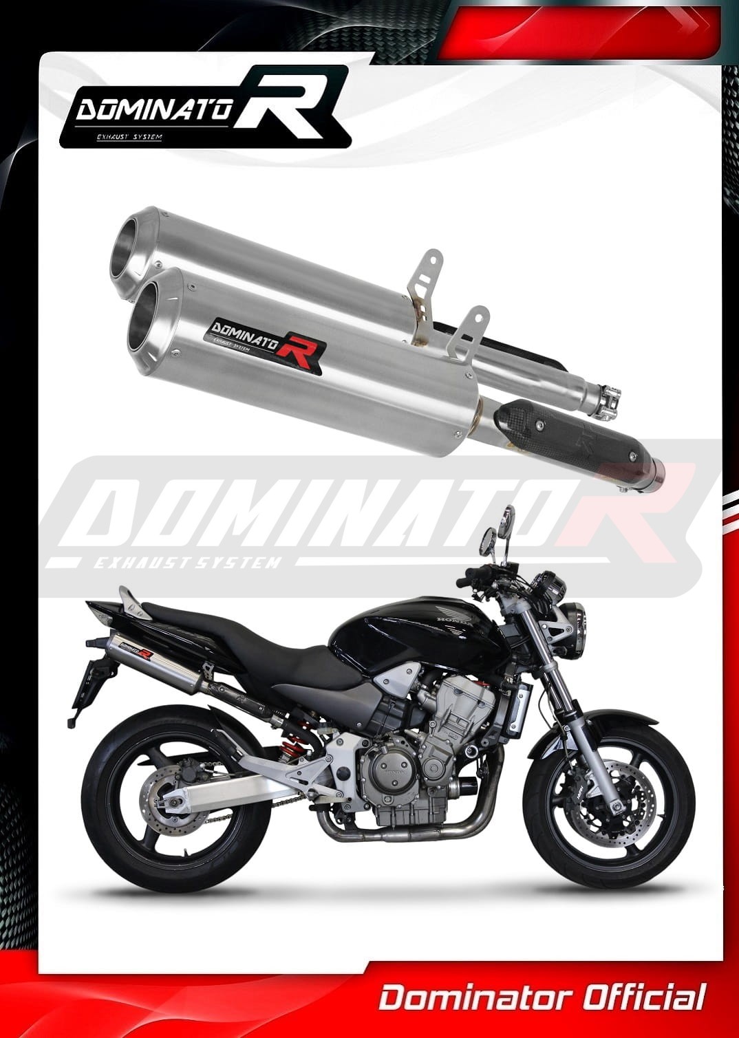 Sistema de escape Dominator cambiará el carácter de su motocicleta dándole un sonido único. El sistema de escape a través aumentará la potencia y el par del motor, mientras que reduce el peso del silenciador.