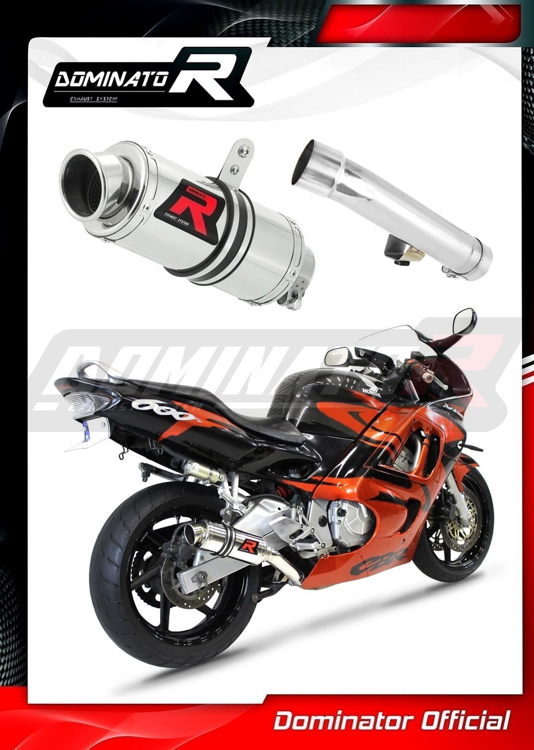 Sistema de escape Dominator cambiará el carácter de su motocicleta dándole un sonido único. El sistema de escape a través aumentará la potencia y el par del motor, mientras que reduce el peso del silenciador.