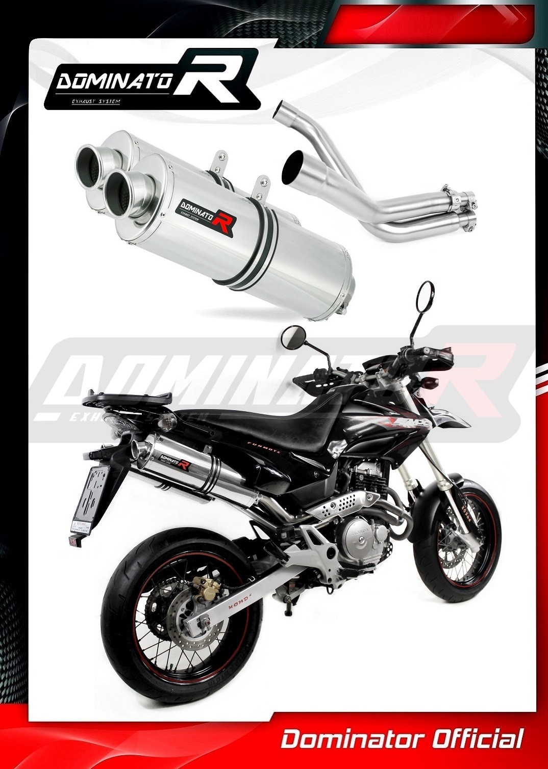 Sistema de escape Dominator cambiará el carácter de su motocicleta dándole un sonido único. El sistema de escape a través aumentará la potencia y el par del motor, mientras que reduce el peso del silenciador.