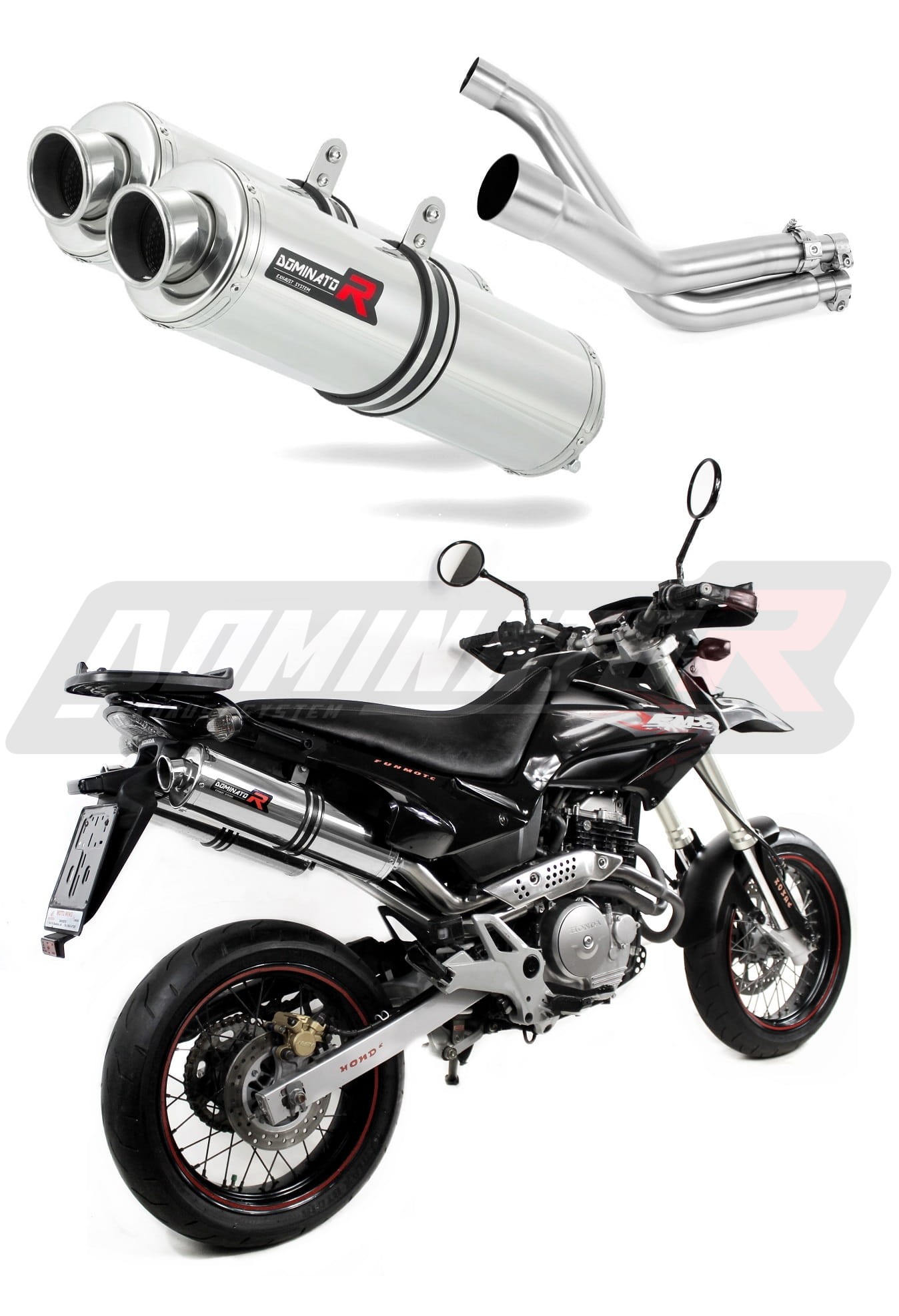 Sistema de escape Dominator cambiará el carácter de su motocicleta dándole un sonido único. El sistema de escape a través aumentará la potencia y el par del motor, mientras que reduce el peso del silenciador.