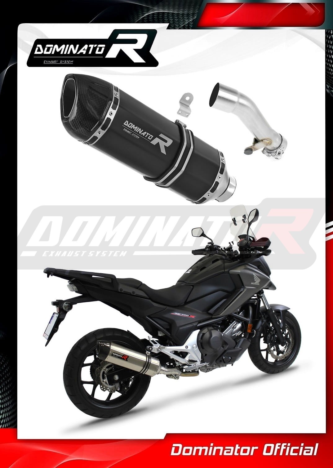 Sistema de escape Dominator cambiará el carácter de su motocicleta dándole un sonido único. El sistema de escape a través aumentará la potencia y el par del motor, mientras que reduce el peso del silenciador.
