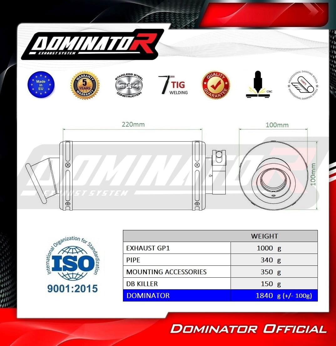 Sistema de escape Dominator cambiará el carácter de su motocicleta dándole un sonido único. El sistema de escape a través aumentará la potencia y el par del motor, mientras que reduce el peso del silenciador.