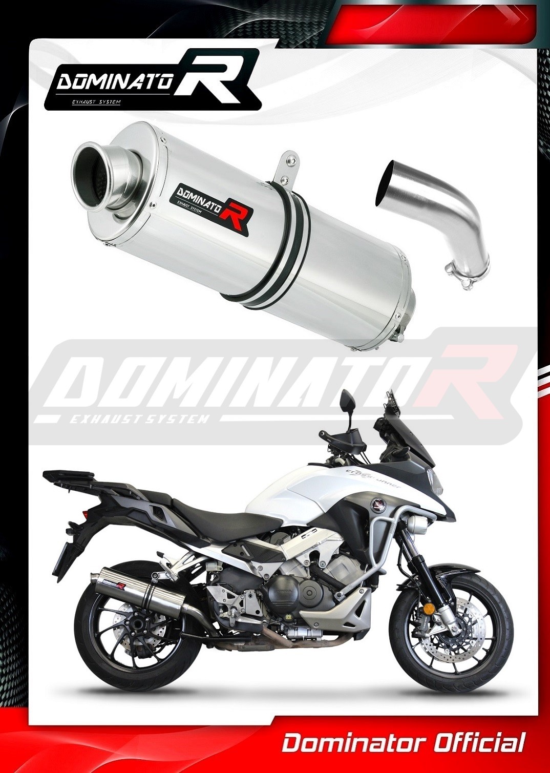 Sistema de escape Dominator cambiará el carácter de su motocicleta dándole un sonido único. El sistema de escape a través aumentará la potencia y el par del motor, mientras que reduce el peso del silenciador.