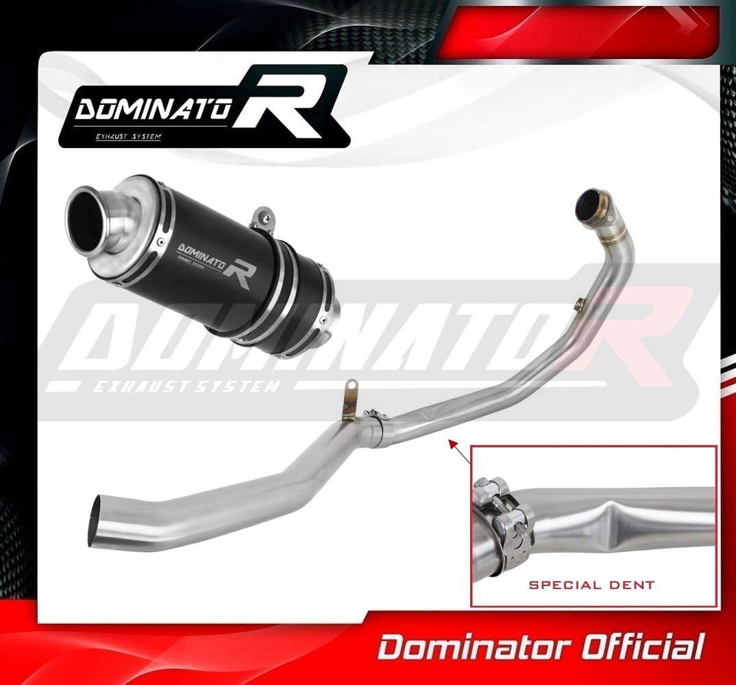 El sistema de escape Dominator cambiará el carácter de su motocicleta dándole un sonido único. El kit de colector más el deporte Dominator a través del silenciador aumentará la potencia y el par del motor mientras reduce todo el sistema de escape.