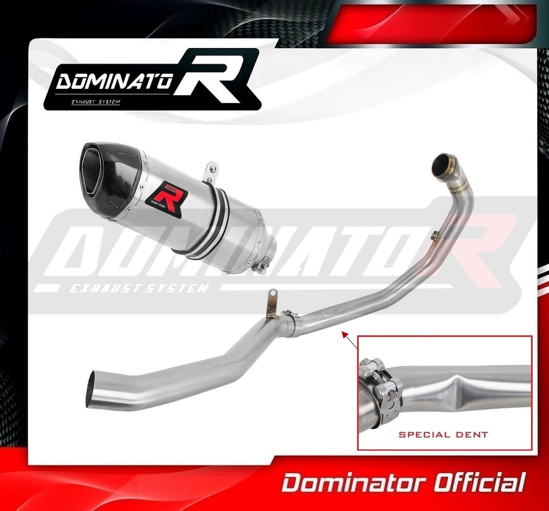 El sistema de escape Dominator cambiará el carácter de su motocicleta dándole un sonido único. El kit de colector más el deporte Dominator a través del silenciador aumentará la potencia y el par del motor mientras reduce todo el sistema de escape.