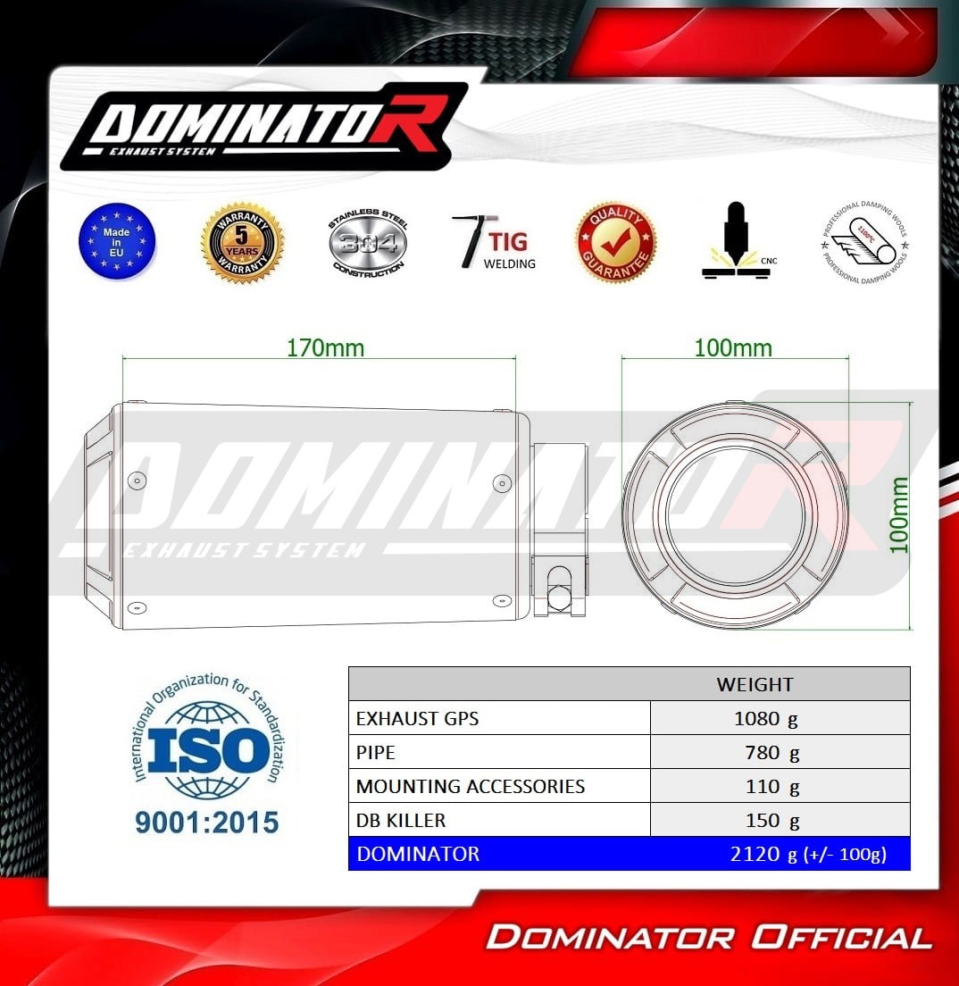 Sistema de escape Dominator cambiará el carácter de su motocicleta dándole un sonido único. El sistema de escape a través aumentará la potencia y el par del motor, mientras que reduce el peso del silenciador.