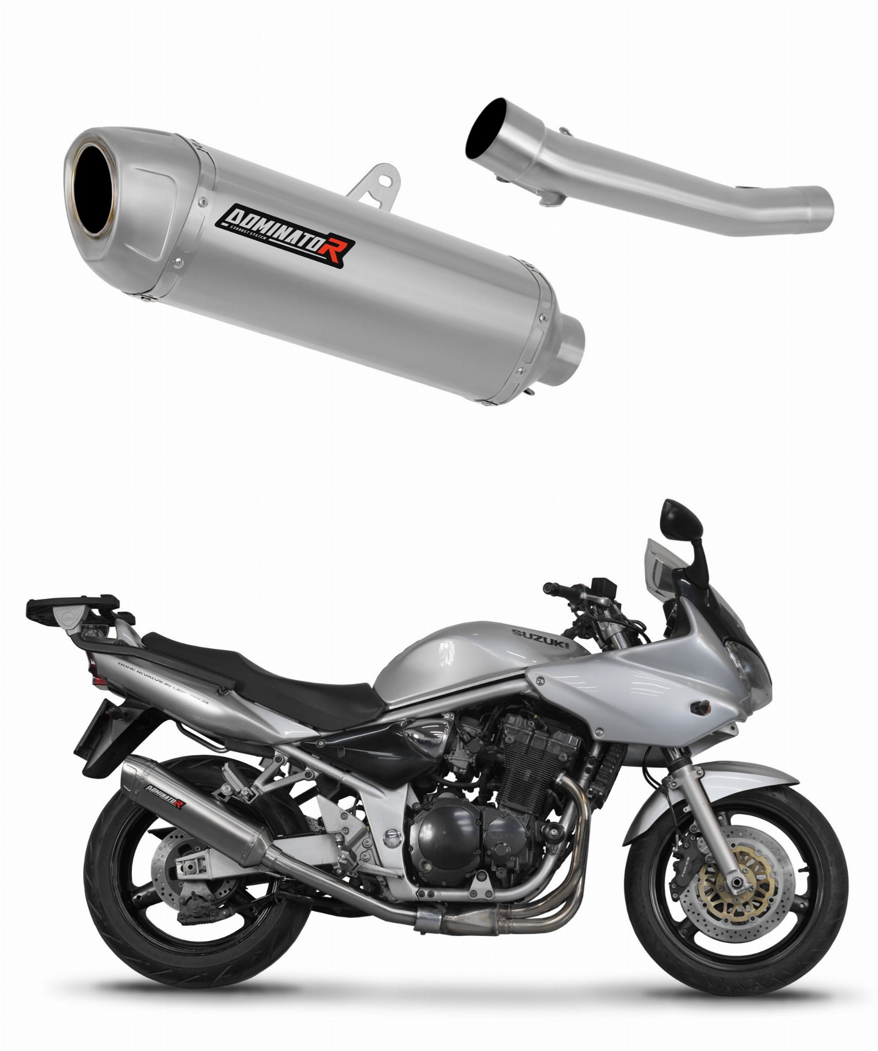 De escape Dominator cambiará el carácter de su motocicleta dándole un sonido único. El sistema de escape a través aumentará la potencia y el par del motor, mientras que reduce el peso del silenciador.