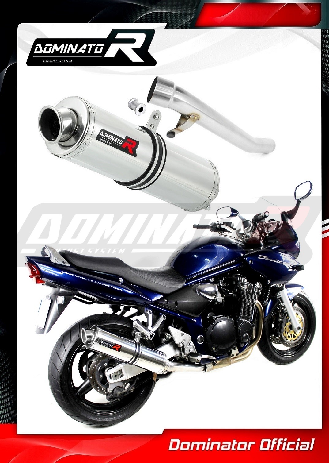 Sistema de escape Dominator cambiará el carácter de su motocicleta dándole un sonido único. El sistema de escape a través aumentará la potencia y el par del motor, mientras que reduce el peso del silenciador.