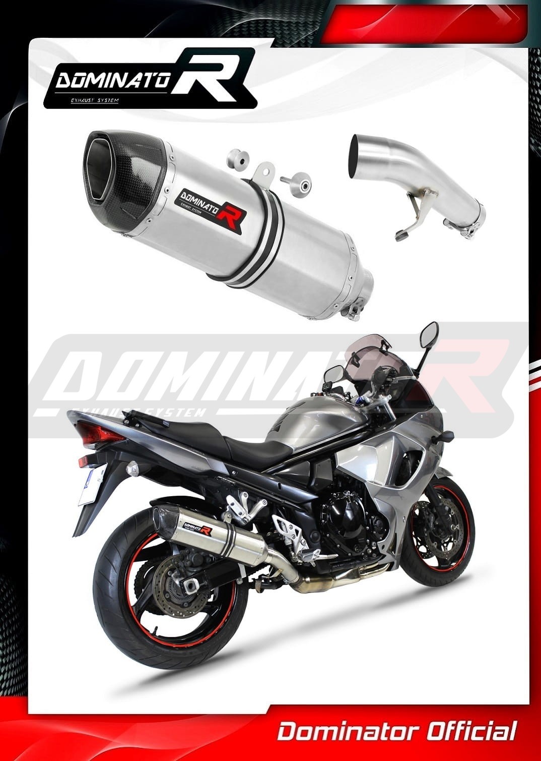 Sistema de escape Dominator cambiará el carácter de su motocicleta dándole un sonido único. El sistema de escape a través aumentará la potencia y el par del motor, mientras que reduce el peso del silenciador.