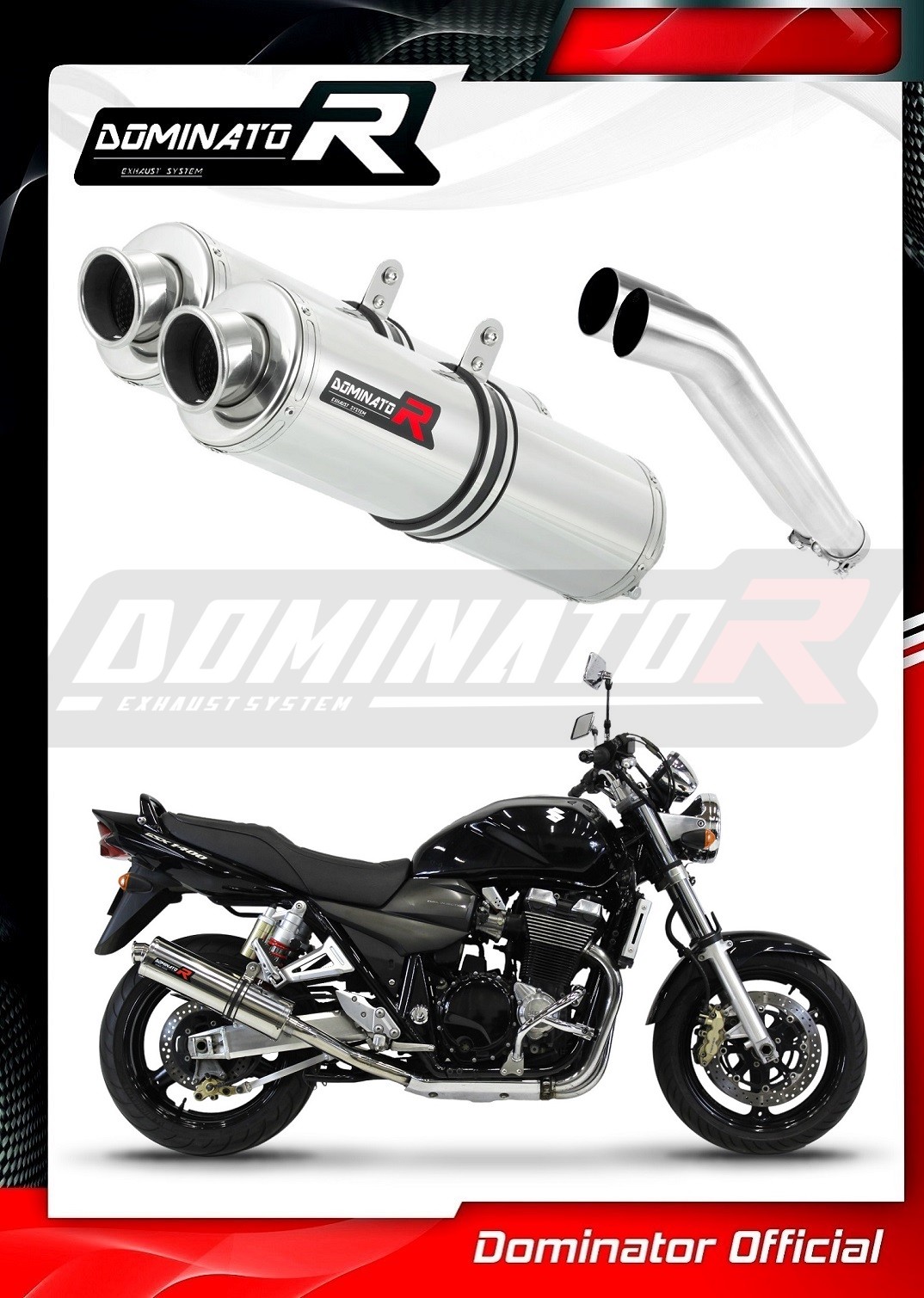 Sistema de escape Dominator cambiará el carácter de su motocicleta dándole un sonido único. El sistema de escape a través aumentará la potencia y el par del motor, mientras que reduce el peso del silenciador.