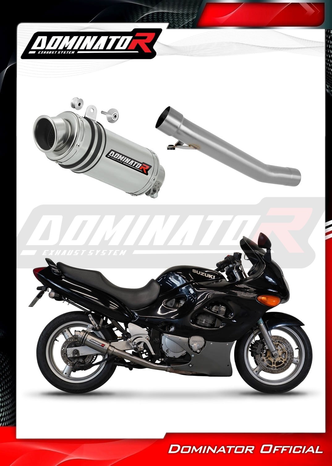 Sistema de escape Dominator cambiará el carácter de su motocicleta dándole un sonido único. El sistema de escape a través aumentará la potencia y el par del motor, mientras que reduce el peso del silenciador.
