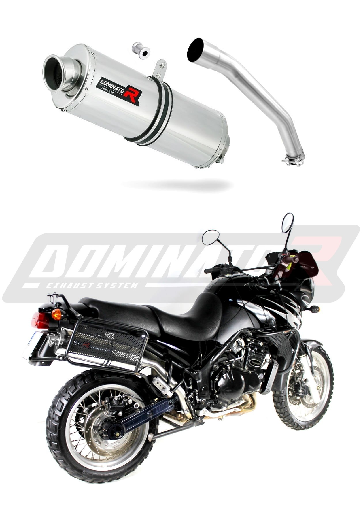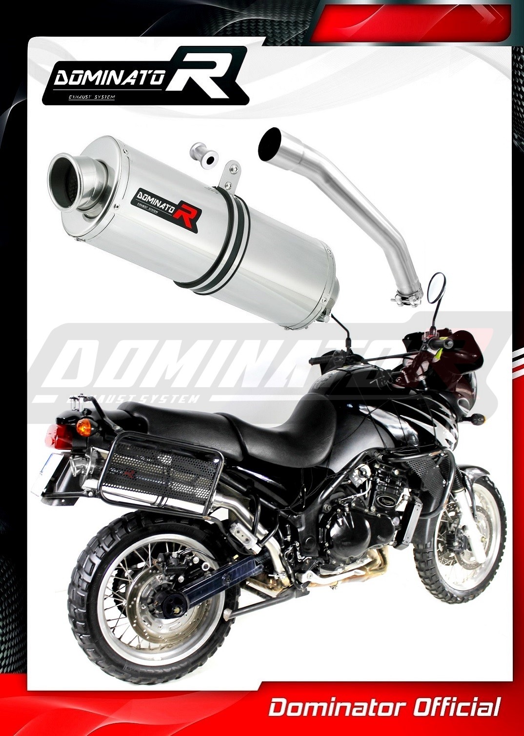 Sistema de escape Dominator cambiará el carácter de su motocicleta dándole un sonido único. El sistema de escape a través aumentará la potencia y el par del motor, mientras que reduce el peso del silenciador.