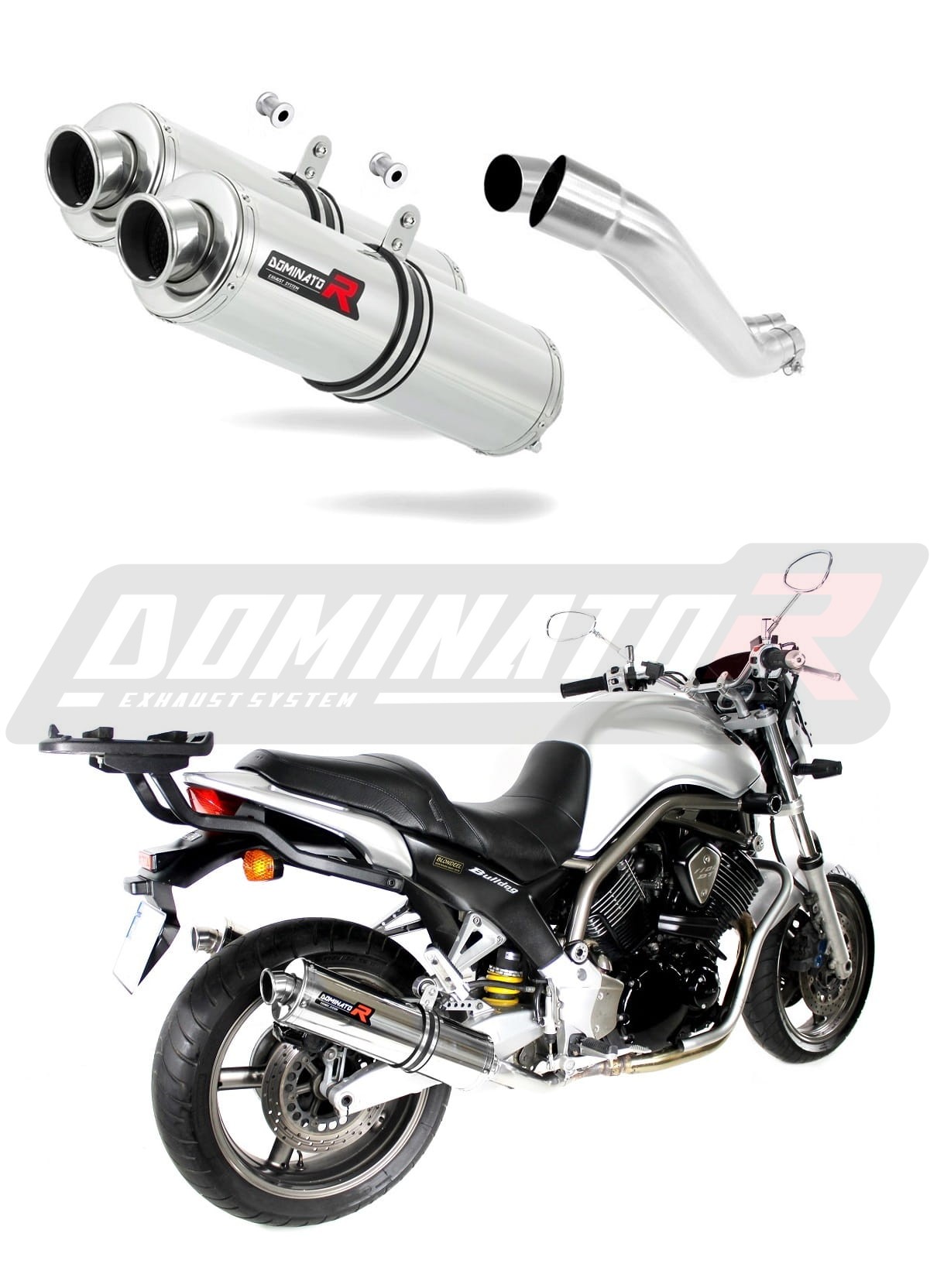 Sistema de escape Dominator cambiará el carácter de su motocicleta dándole un sonido único. El sistema de escape a través aumentará la potencia y el par del motor, mientras que reduce el peso del silenciador.