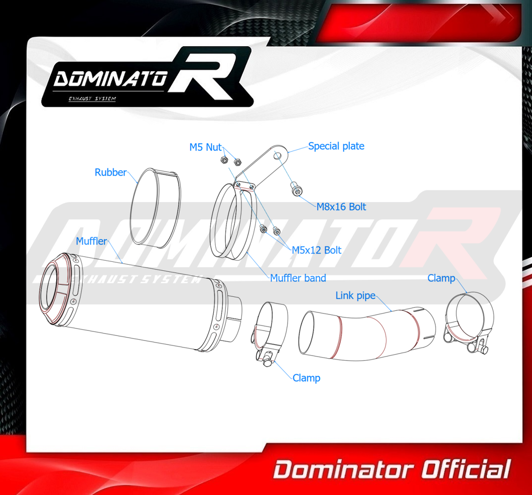 Sistema de escape Dominator cambiará el carácter de su motocicleta dándole un sonido único. El sistema de escape a través aumentará la potencia y el par del motor, mientras que reduce el peso del silenciador.
