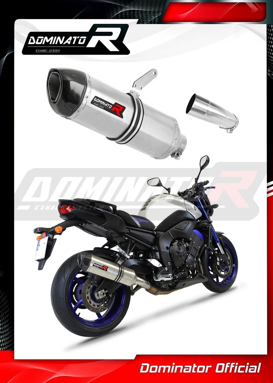 Sistema de escape Dominator cambiará el carácter de su motocicleta dándole un sonido único. El sistema de escape a través aumentará la potencia y el par del motor, mientras que reduce el peso del silenciador.