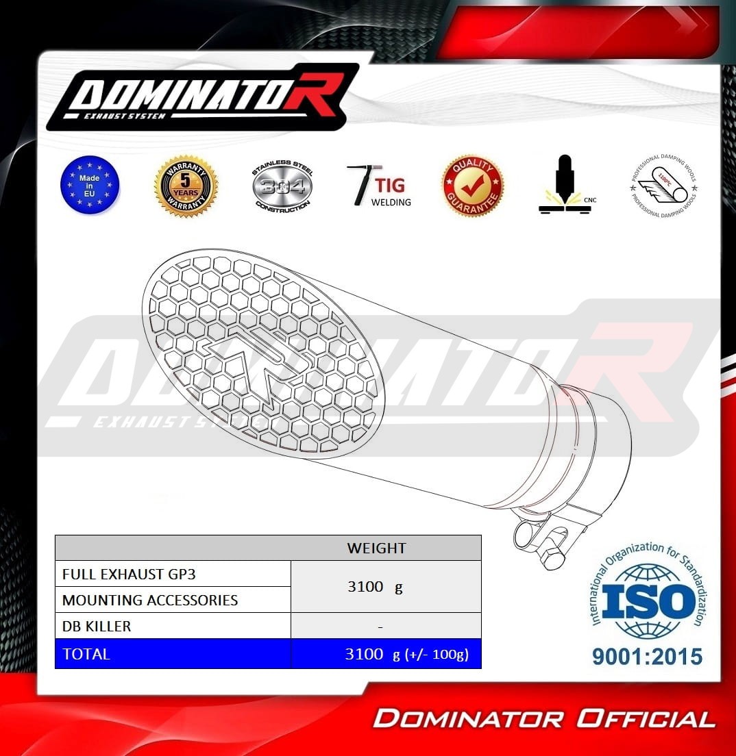 El sistema de escape DOMINATOR con silenciador GP3 se adapta a las motocicletas: