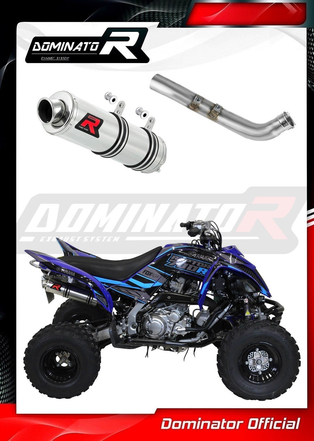 Sistema de escape Dominator cambiará el carácter de su quad dándole un sonido único. El sistema de escape a través aumentará la potencia y el par del motor, mientras que reduce el peso del silenciador.