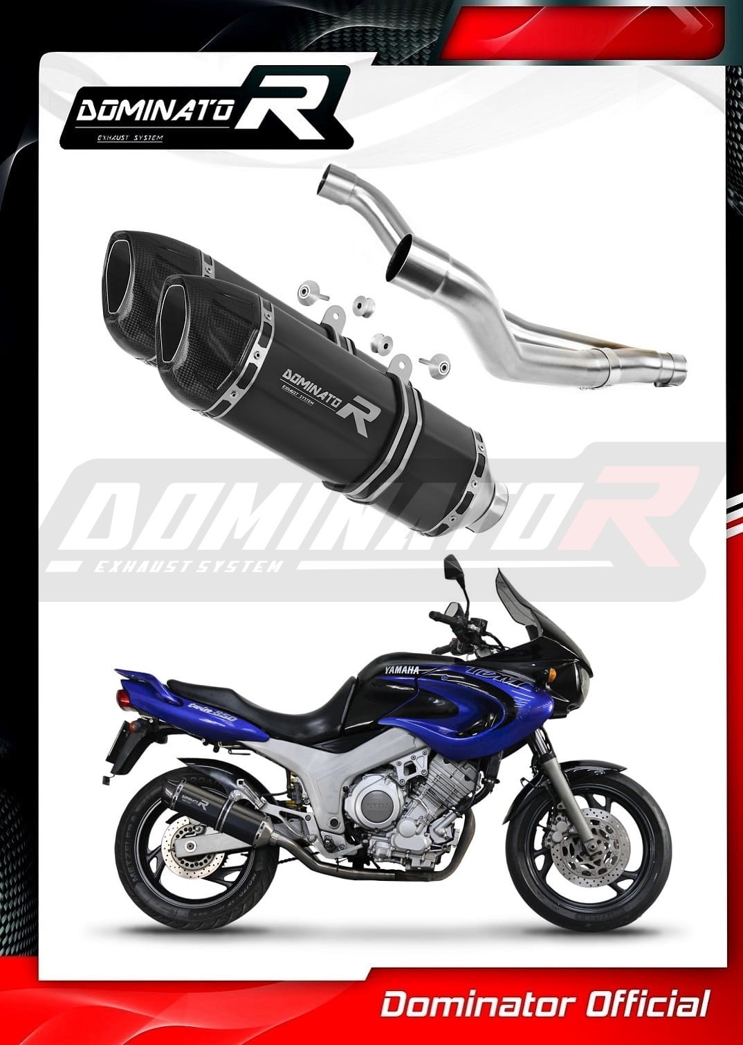 Sistema de escape Dominator cambiará el carácter de su motocicleta dándole un sonido único. El sistema de escape a través aumentará la potencia y el par del motor, mientras que reduce el peso del silenciador.