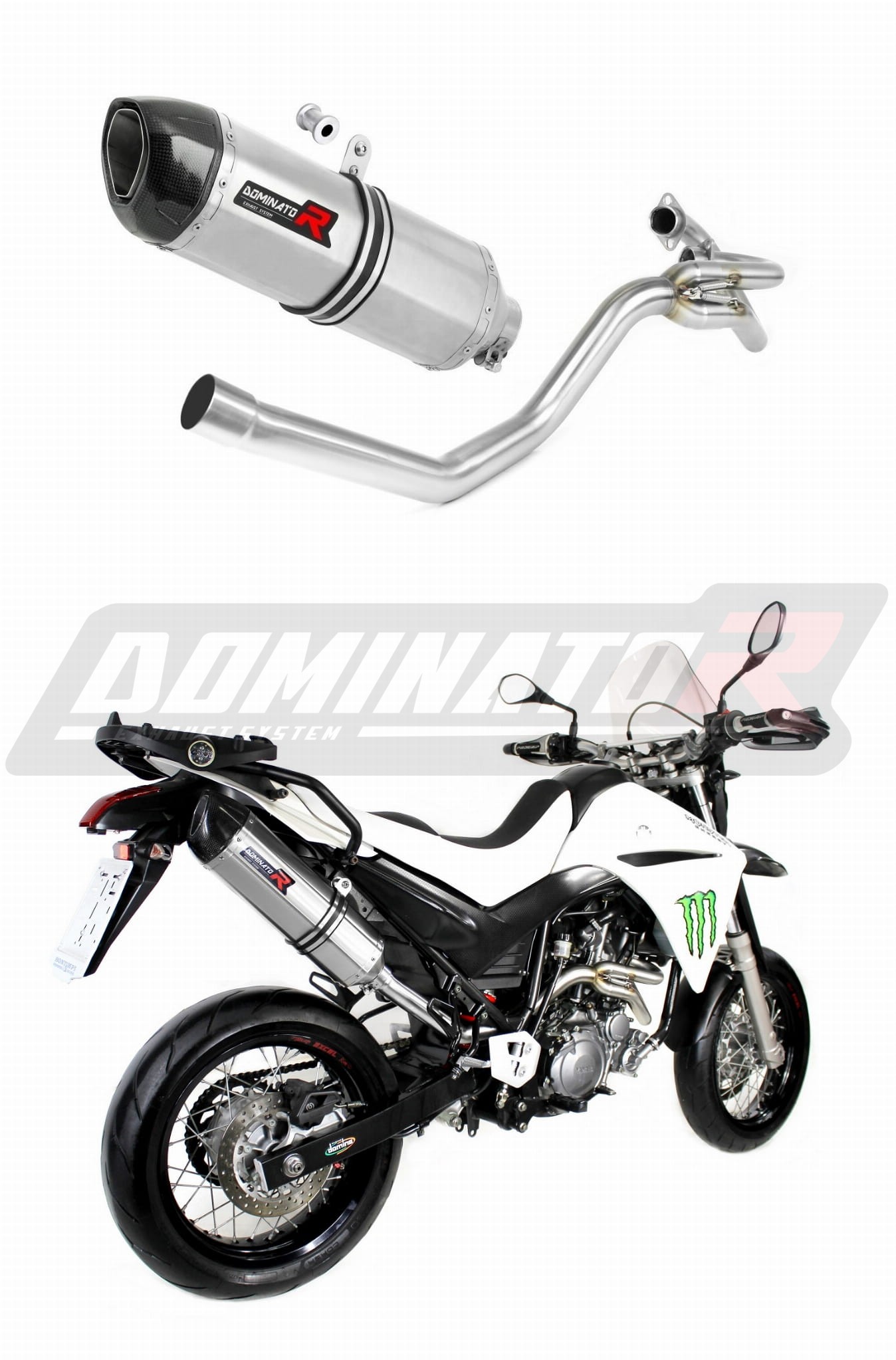 Sistema de escape Dominator cambiará el carácter de su motocicleta dándole un sonido único. El sistema de escape a través aumentará la potencia y el par del motor, mientras que reduce el peso del silenciador.