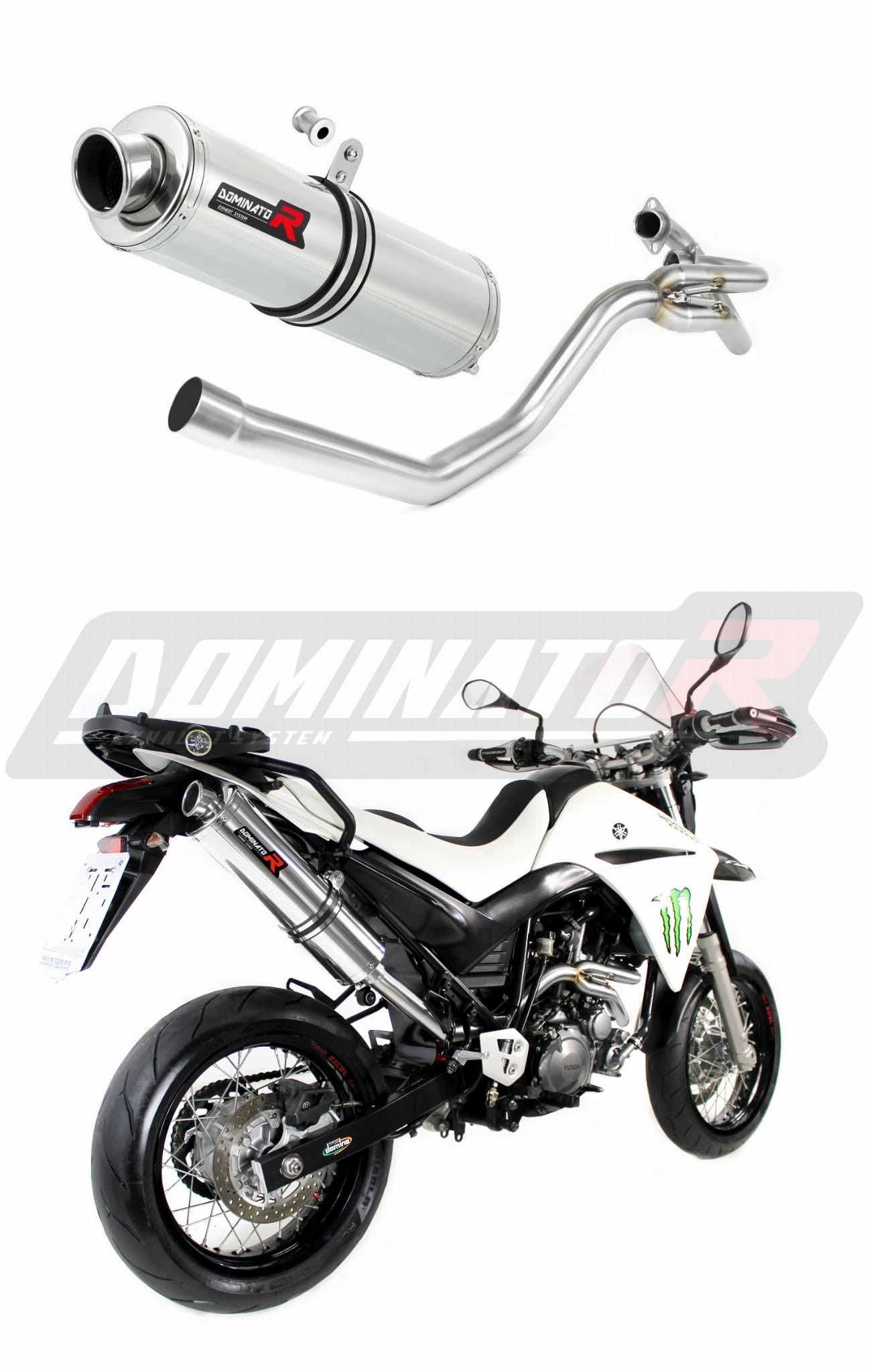Sistema de escape Dominator cambiará el carácter de su motocicleta dándole un sonido único. El sistema de escape a través aumentará la potencia y el par del motor, mientras que reduce el peso del silenciador.
