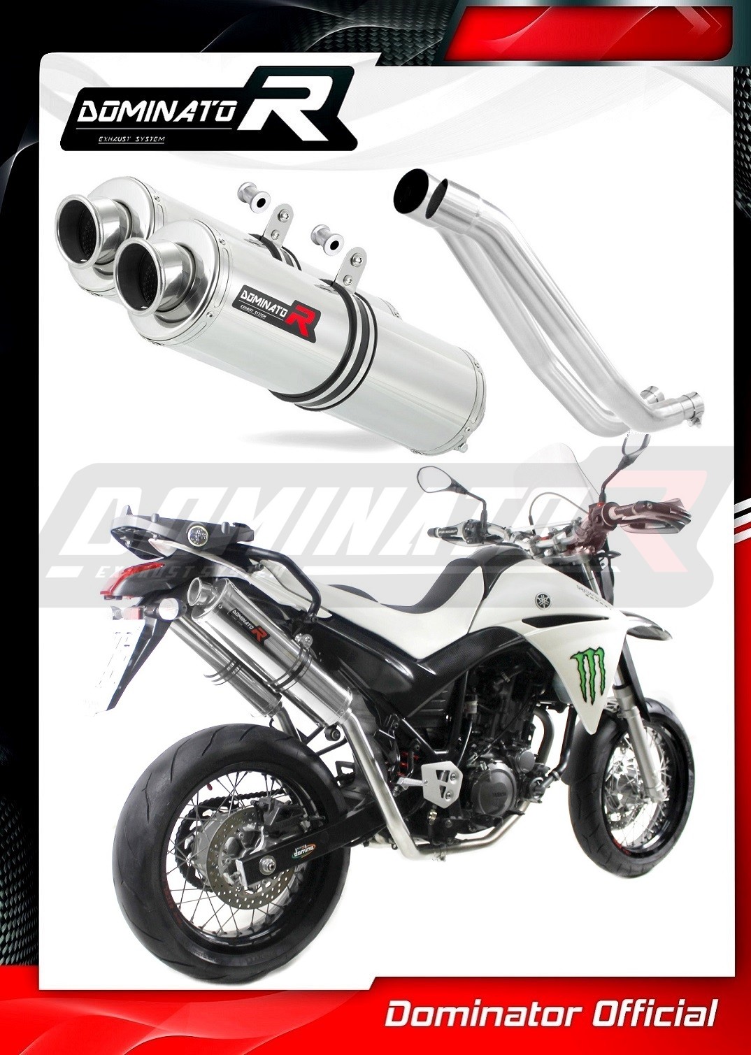 Sistema de escape Dominator cambiará el carácter de su motocicleta dándole un sonido único. El sistema de escape a través aumentará la potencia y el par del motor, mientras que reduce el peso del silenciador.
