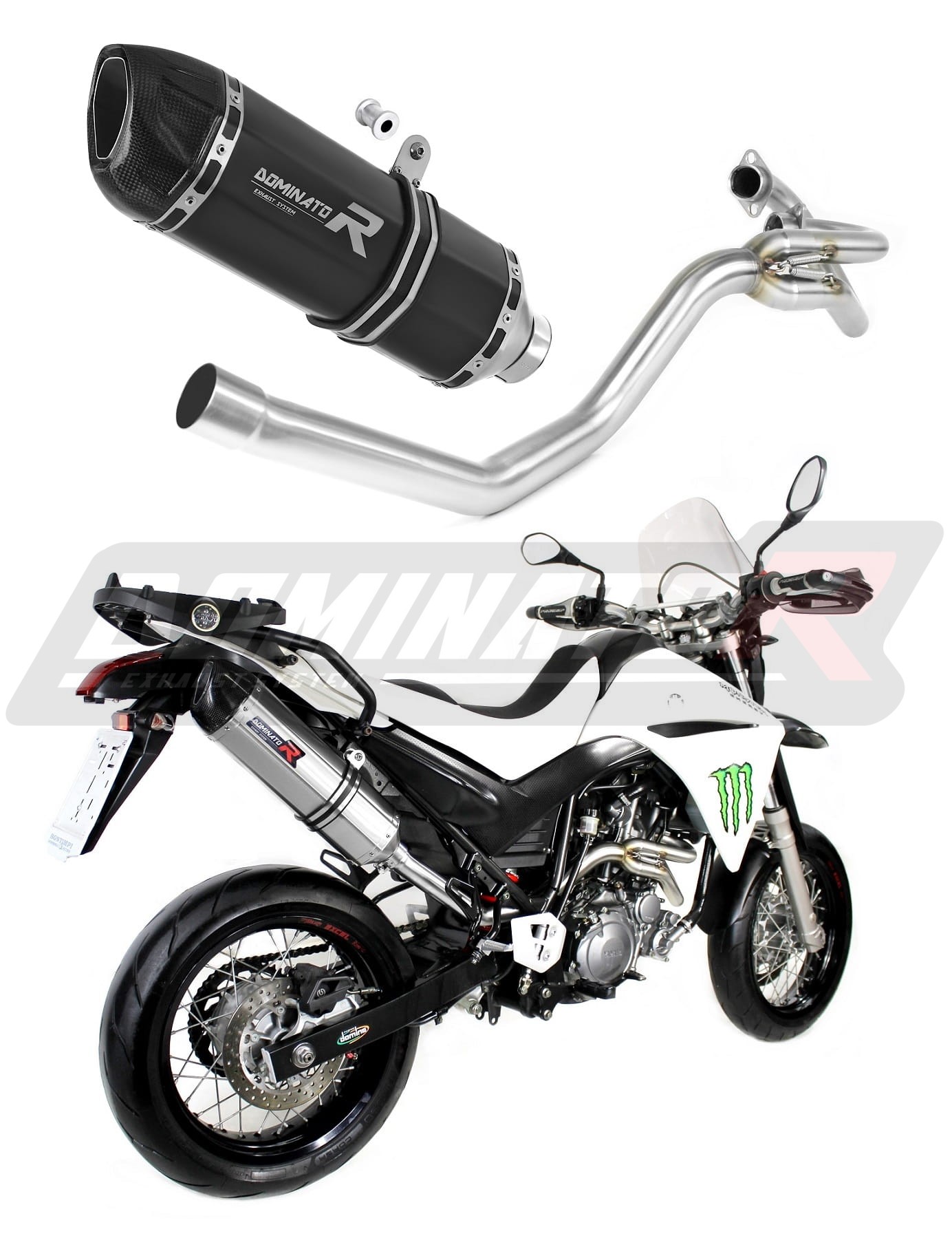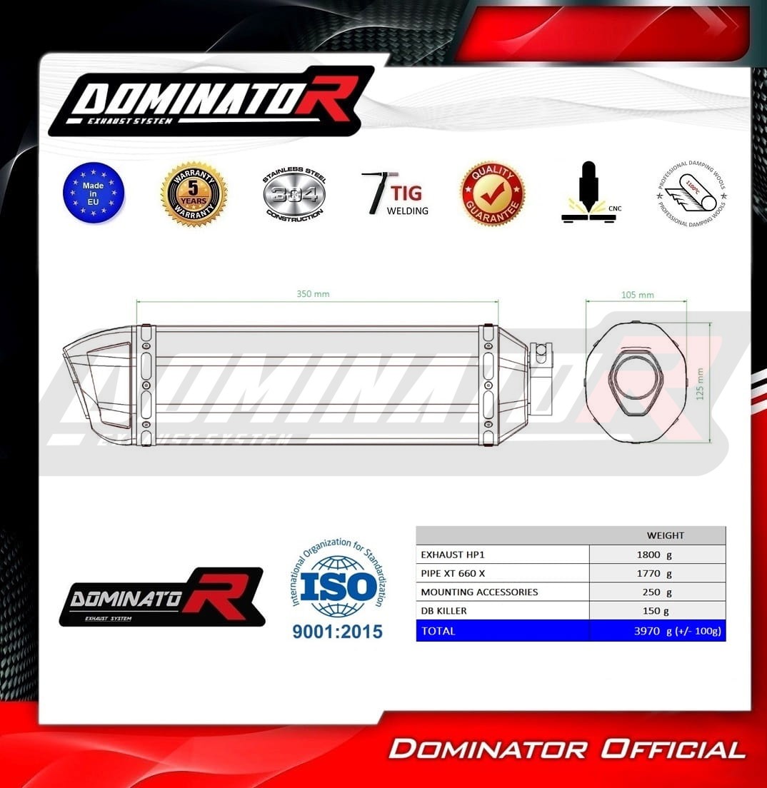 Sistema de escape Dominator cambiará el carácter de su motocicleta dándole un sonido único. El sistema de escape a través aumentará la potencia y el par del motor, mientras que reduce el peso del silenciador.