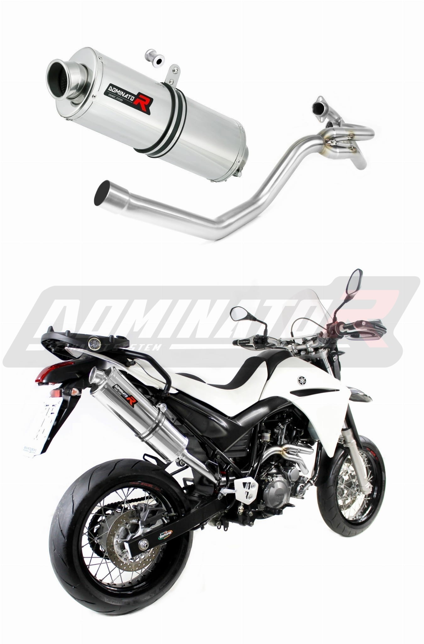 Sistema de escape Dominator cambiará el carácter de su motocicleta dándole un sonido único. El sistema de escape a través aumentará la potencia y el par del motor, mientras que reduce el peso del silenciador.