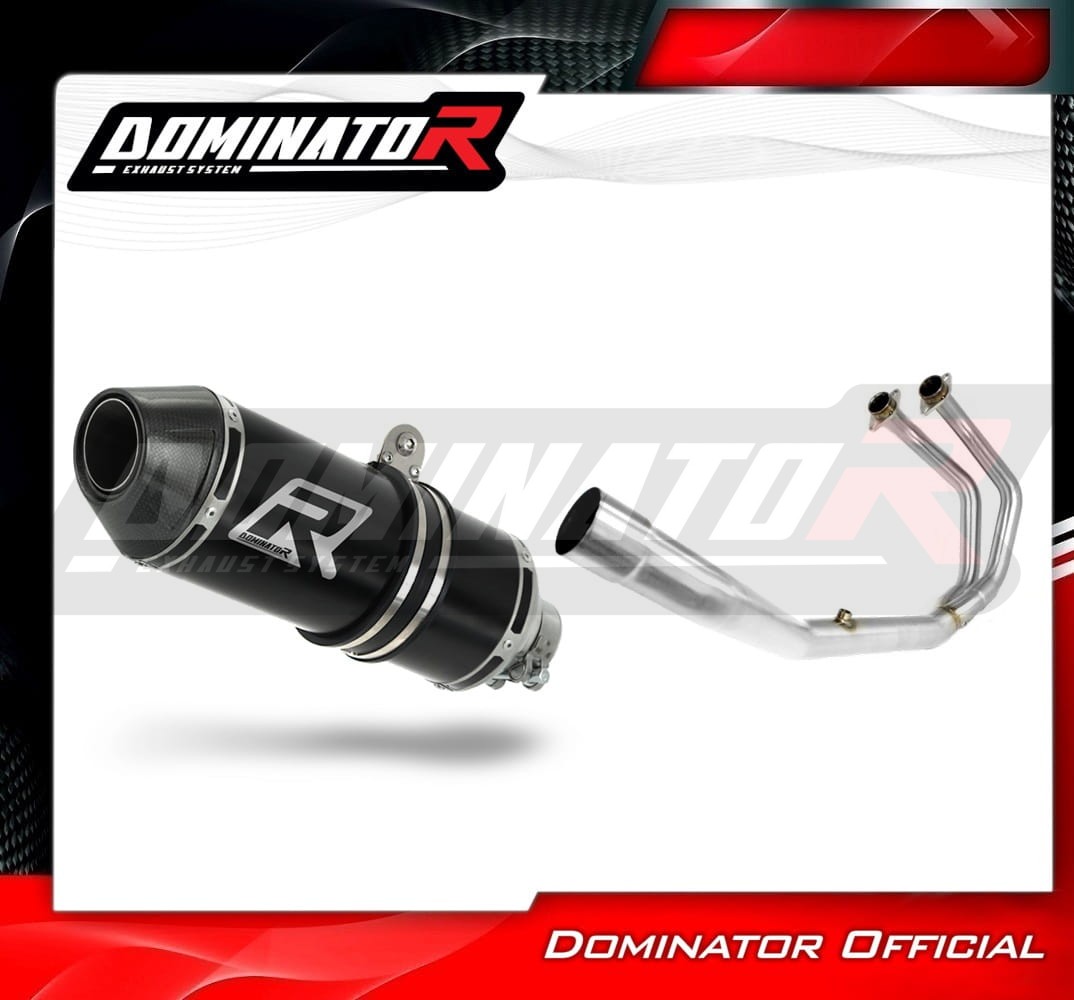 Sistema de escape completo deportivo DOMINATOR para Yamaha YZF-R3 300 2015 - 2018 Establecer contenido: Silenciador, dB killer medium, colector, elementos de montaje. Los silenciadores DOMINATOR garantizan un sonido bajo y fuerte. Descripción del producto: ESTE PRODUCTO NO CUMPLE LOS REQUISITOS DE EMISIONES PARA USO EN CARRETERA El sistema de escape DOMINATOR con Silenciador HP3 NEGRO se adapta a las motocicletas: